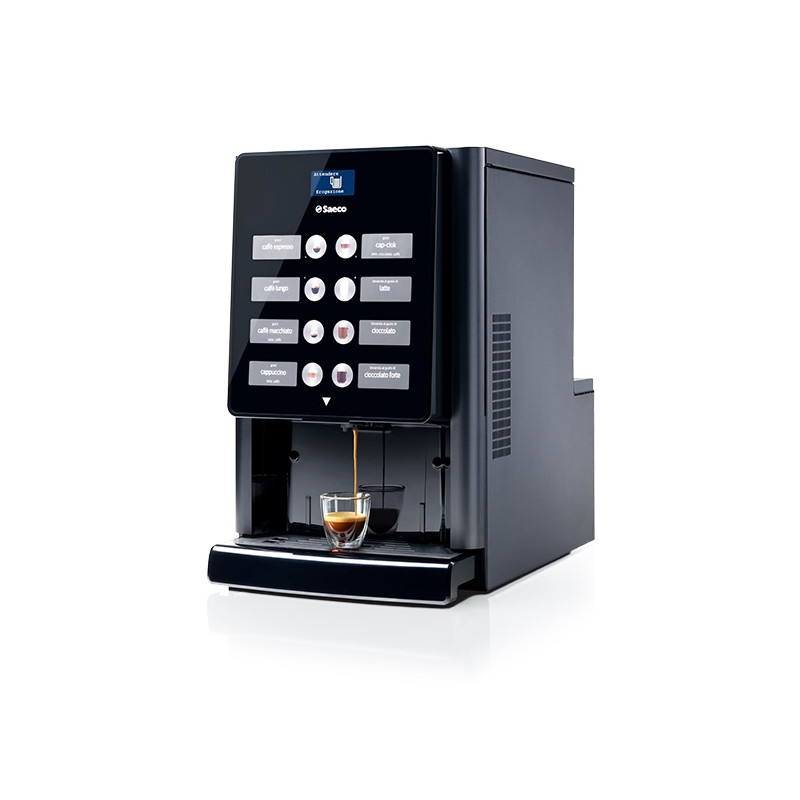 Kompaktní model nápojového automatu Saeco Iperautomatica Premium nabízí rychlou přípravu nápojů na espresso plus čokolády.